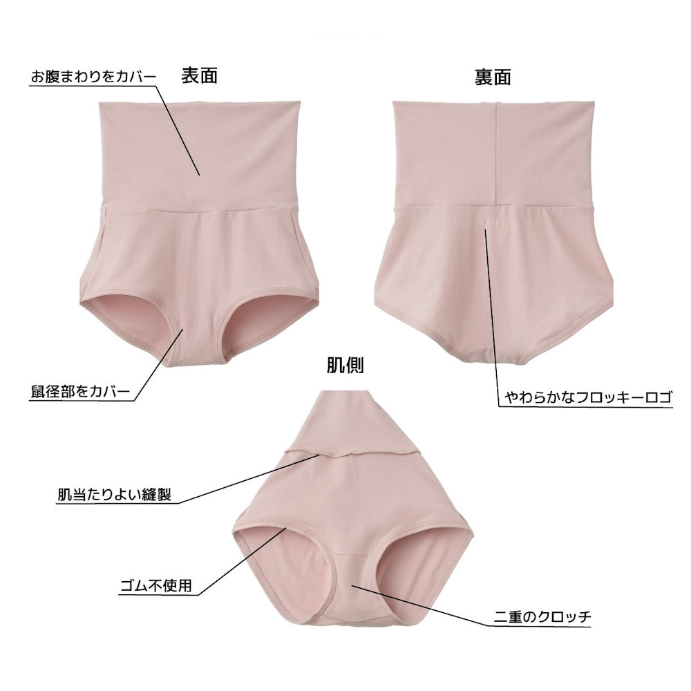 履き口はゴムを使用せず生地のみの伸縮性でお尻とお腹周りをケア。